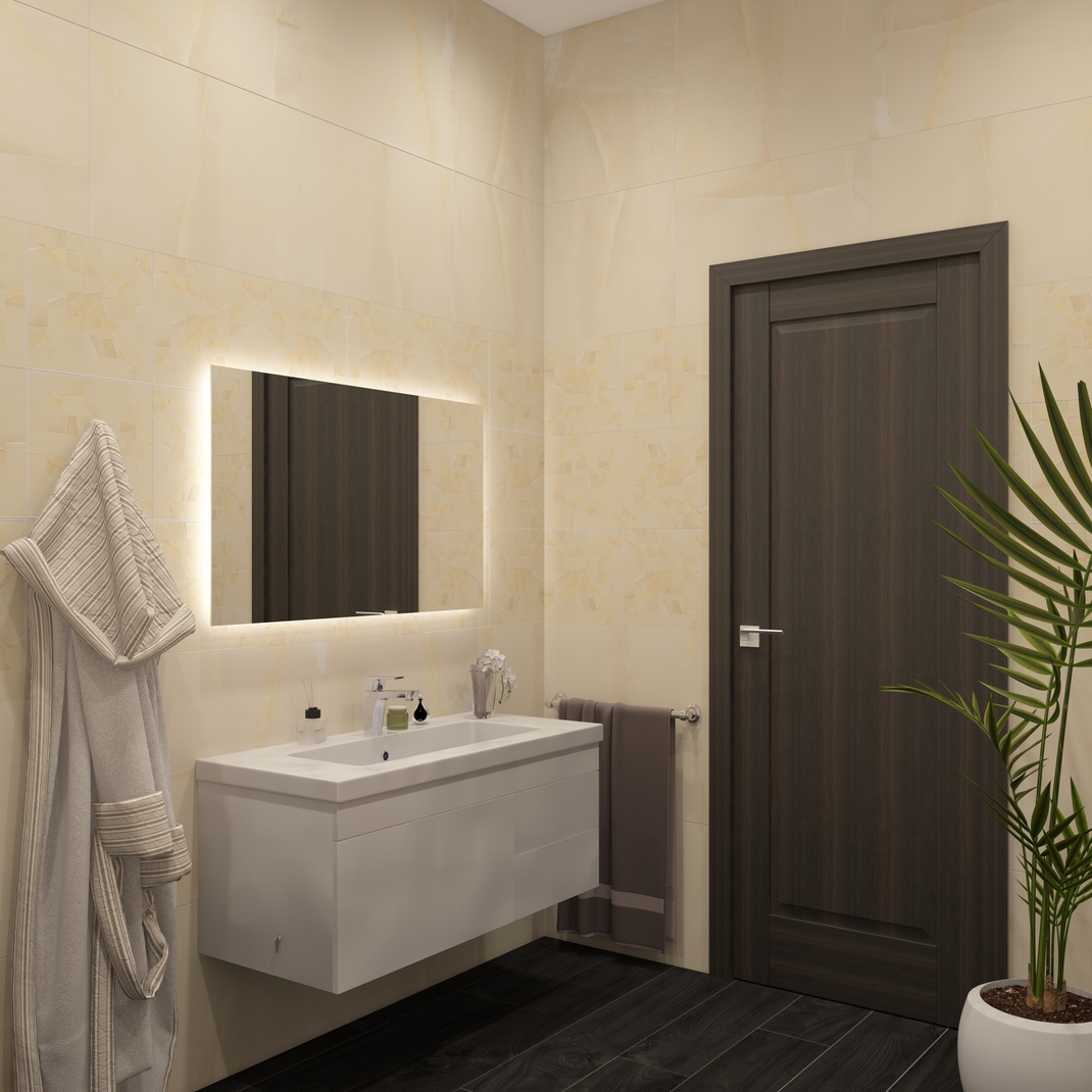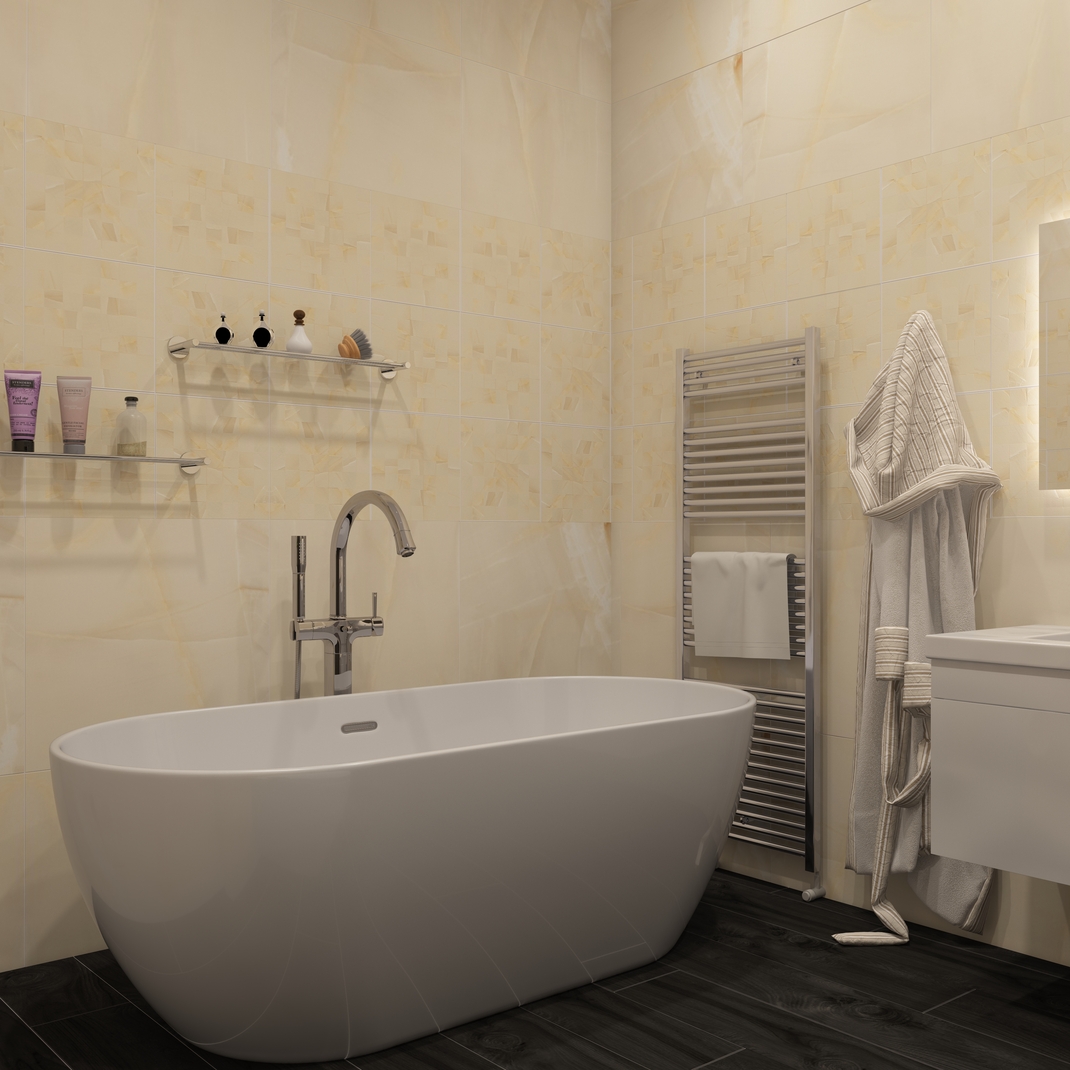 - Керамогранит не впитывает влагу, что делает его идеальным для использования в ванных комнатах, кухнях и на открытых террасах.