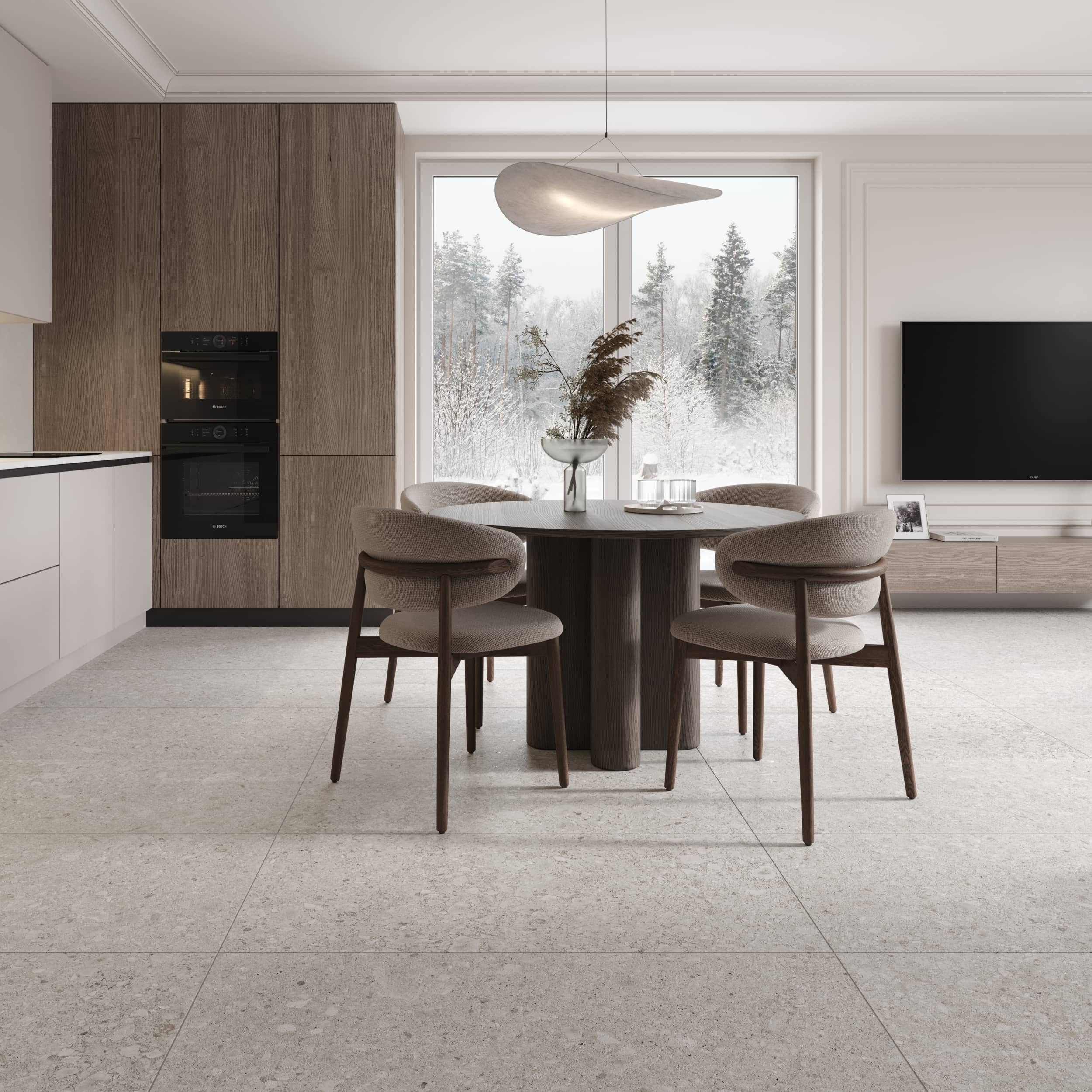 4. Легкость в уходе: Керамогранит легко чистится и не требует сложного ухода.