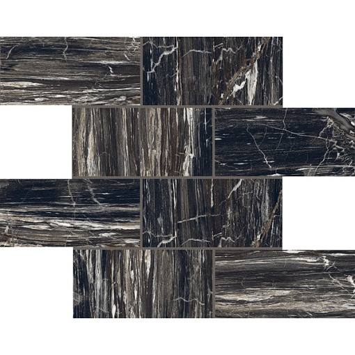 Мозаика из керамического гранита I CLASSICI BRAZILIAN 7,5x15 6MM MUR.GLOS толщиной 6 мм итальянской фабрики REX с полированной поверхностью. Имитация мрамора. Черно-коричневого цвета. Подходит для облицовки стен и укладки на пол. Продается штуками кратно упаковке.